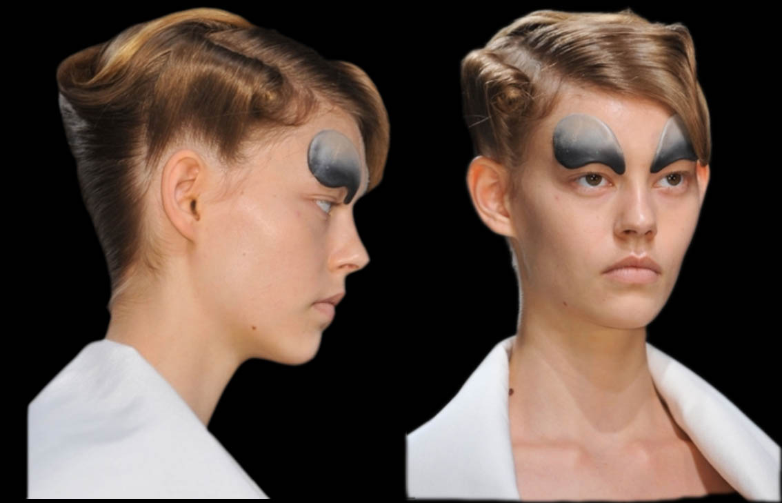 Sulla passerella vediamo esplodere bustier, trapezi esatti capovolti, scolli voluminosi con tagli kimono, capospalla “corazza” che in extremis assumono la forma curva ad evidenziare il taglio décolleté….