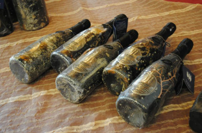 The sparkling wine was called “Abissi” was decanted for 13 months in 6500 bottles, divided into 12 gabions and purchased online.
