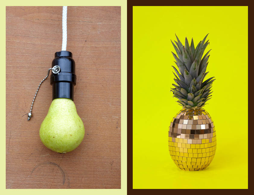Infine vengono fermati in fotogrammi della sua macchinetta fotografica. Come in questo caso: barbabietole che diventano “preziosi rubini”, una pera che ci riporta a un”vintage light”, un mix di ortaggi che si traforma in un abitino bon-ton, un fantastico rossetto pieno di “vitamina C”.