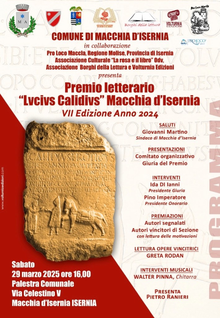 At the 7th edition of the Lucius Calidius Literary Award, held in Macchia d’Isernia (Isernia, Italy) at the end of March, submissions poured in from a wide range of contributors. It was an intense workload for the jury, but the richness of the material made it well worth the effort.